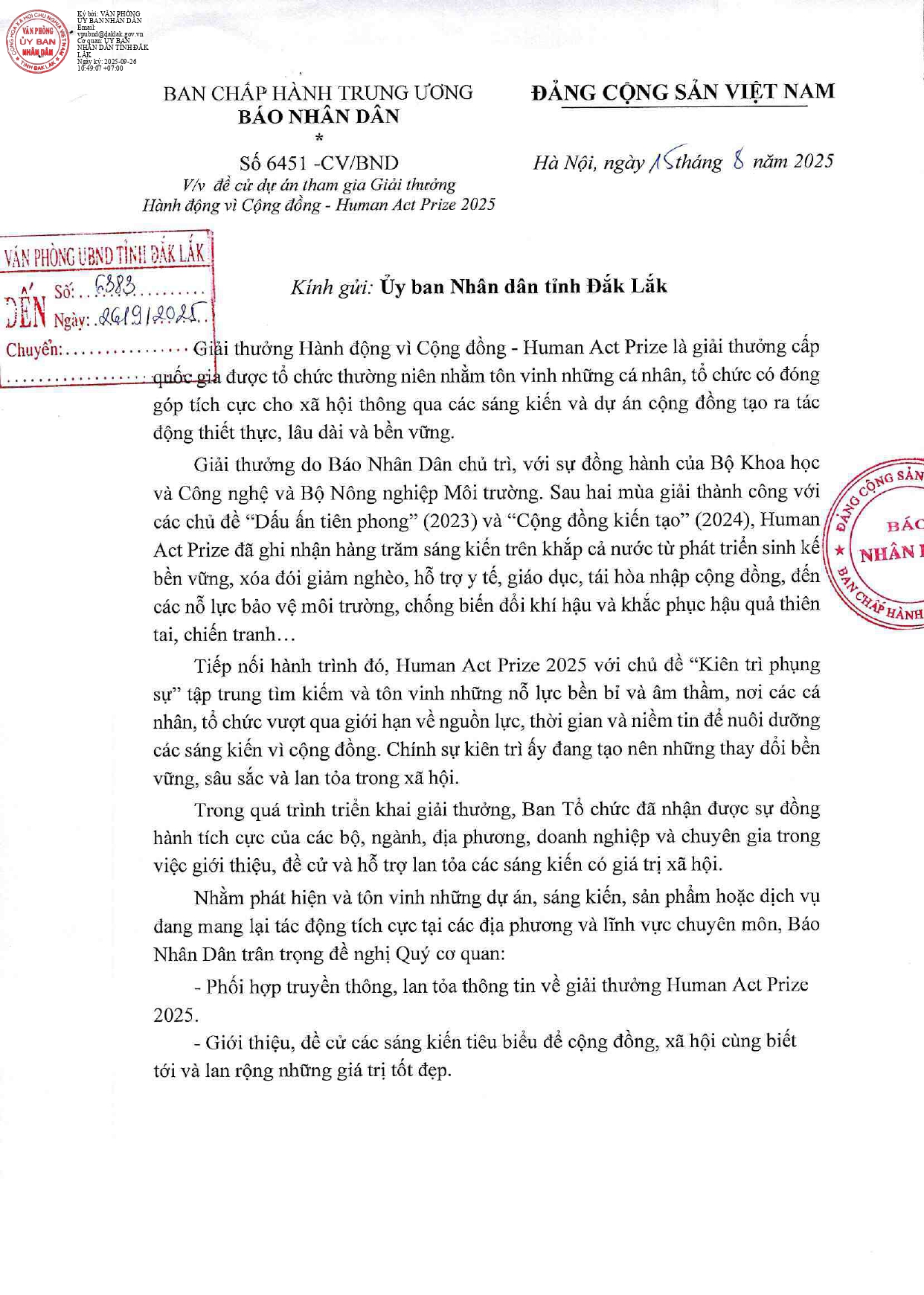- Giải thưởng Hành động vì Cộng đồng - Human Act Prize 2025; (13/10/2025, 00:00)